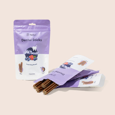 O Pack Hálito tem produtos com sabor a frutos do bosque, que melhoram a saúde oral do seu cão e refrescam o seu hálito.
