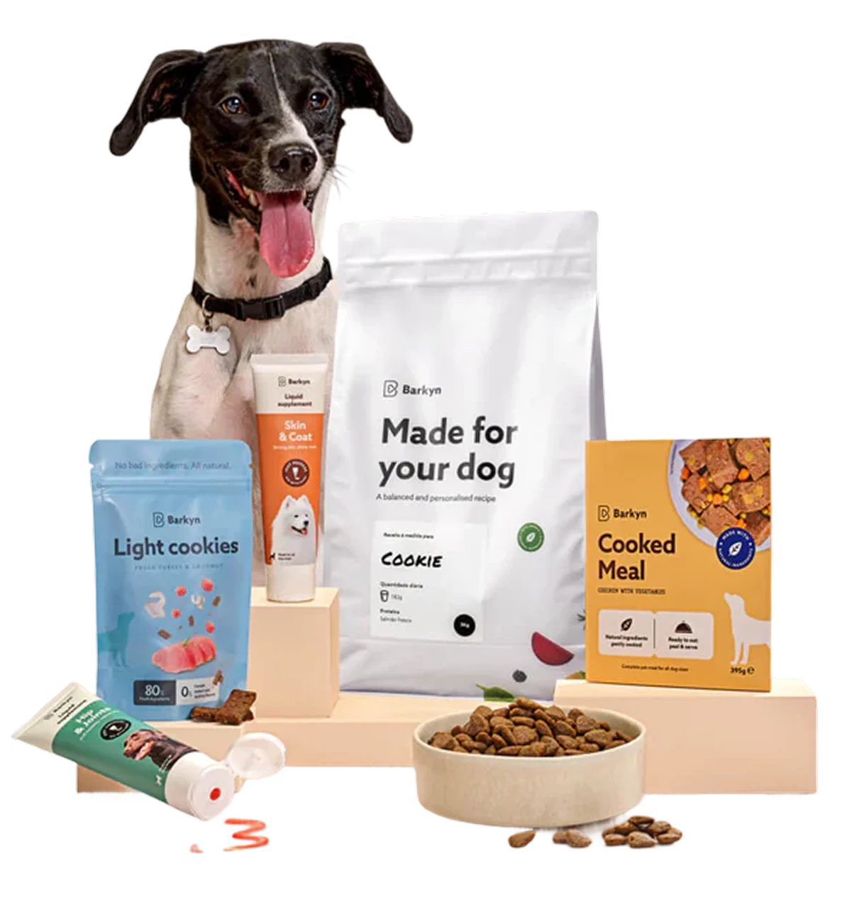 O plano Barkyn combina nutrição prescrita com acompanhamento contínuo de saúde. A comida chega diretamente à sua porta todos os meses, para que nunca lhe falte em casa, e o seu cão é seguido por veterinários, através da nossa app, sem precisar de sair de casa. Pode gerir o seu plano, adicionar produtos, agendar entregas, pausar ou cancelar facilmente na sua área pessoal.