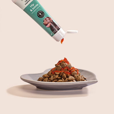 Fórmula concentrada, em formato líquido para misturar com a ração. Intensifica o sabor da refeição enquanto previne e trata problemas articulares.