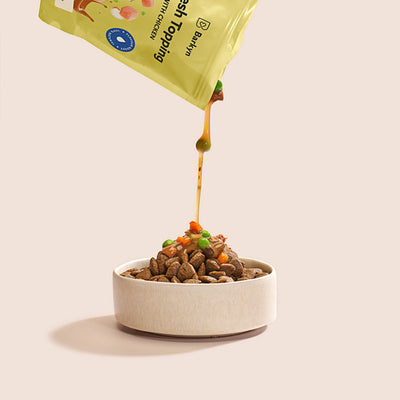 Doses essenciais de vitaminas A e C para reforçar o sistema imuntário. Em forma de topping para mudar o sabor da ração.