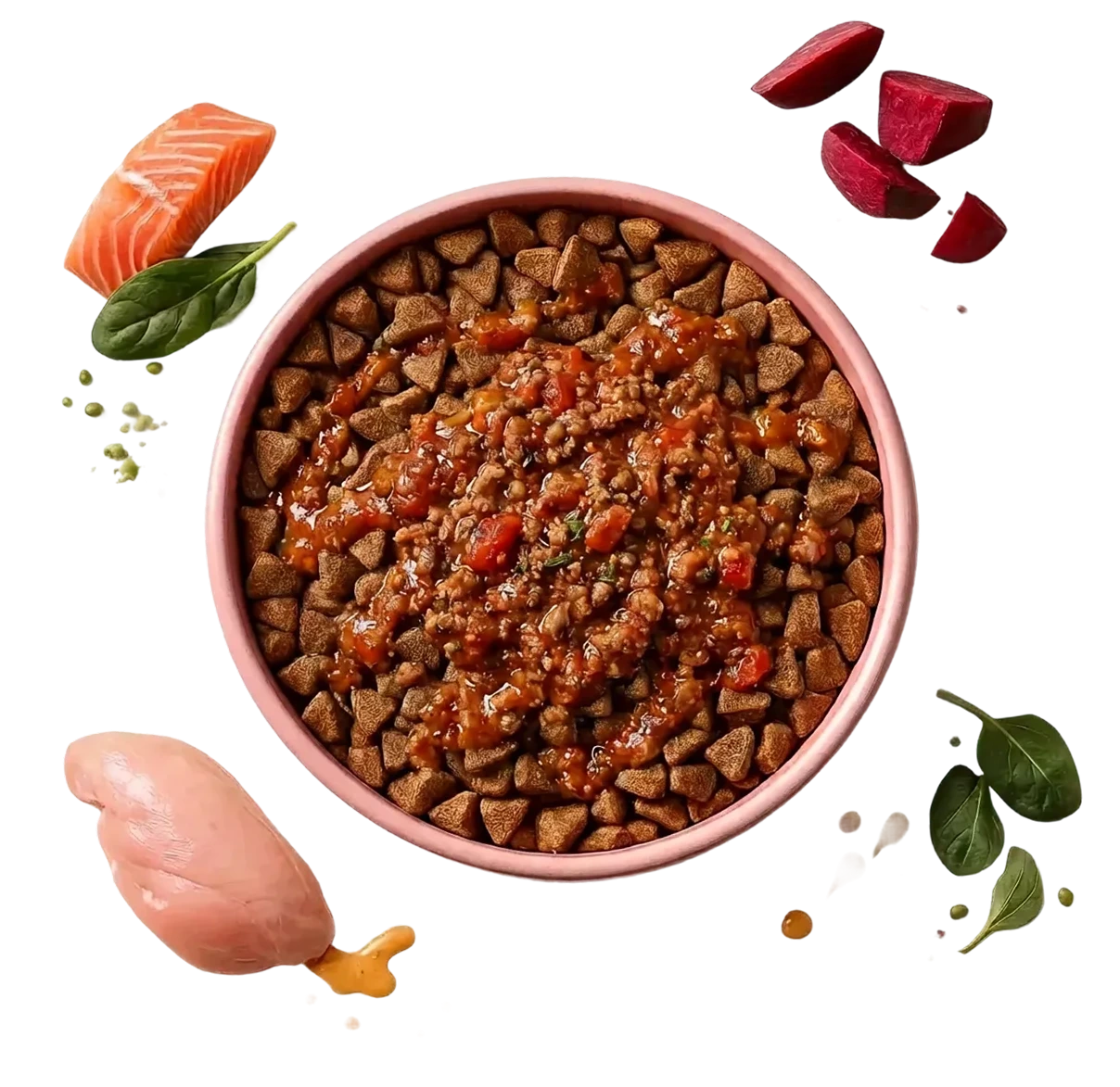 Recomendamos uma alimentação diária 50% ração e 50% comida fresca. Misture ambos e, se quiser, complemente toppings para variar o sabor da refeição.